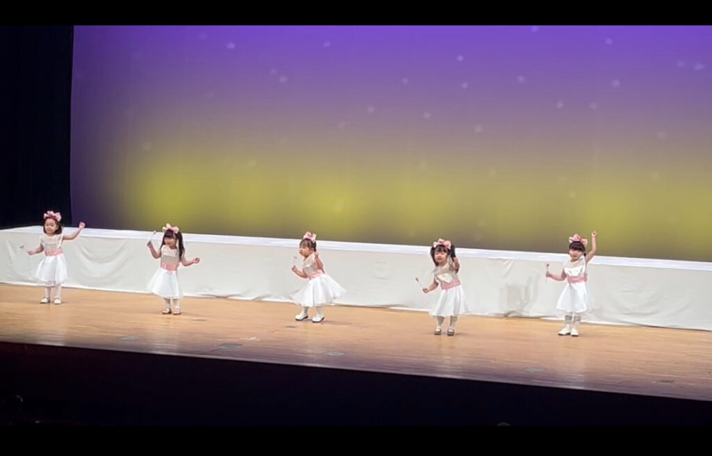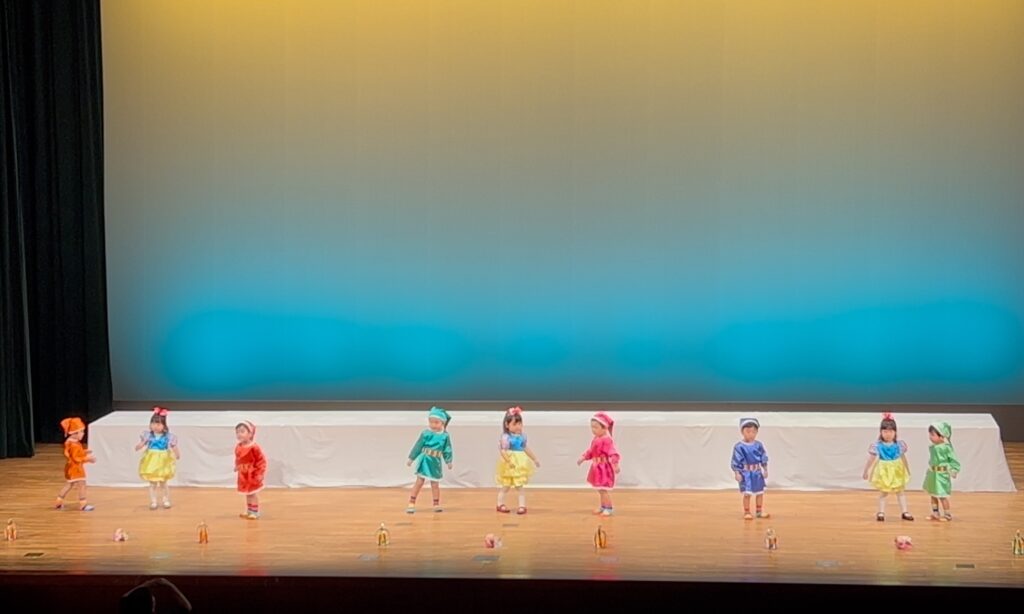 ひばり組は『ハイホー』を白雪姫と小人たちで、『Kawaii Festival』をキティちゃんになりきって踊りました。
