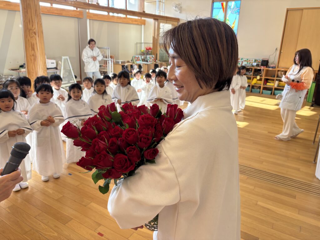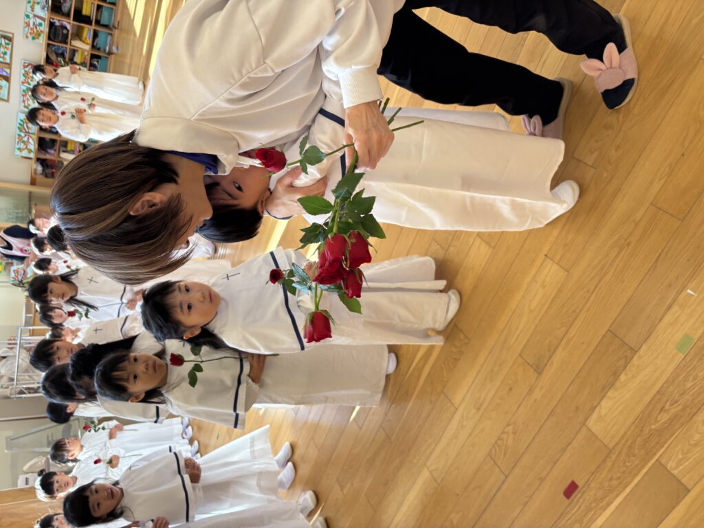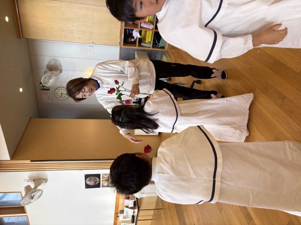 一人一本ずつバラの花をもち、プレゼントしました🌹✨