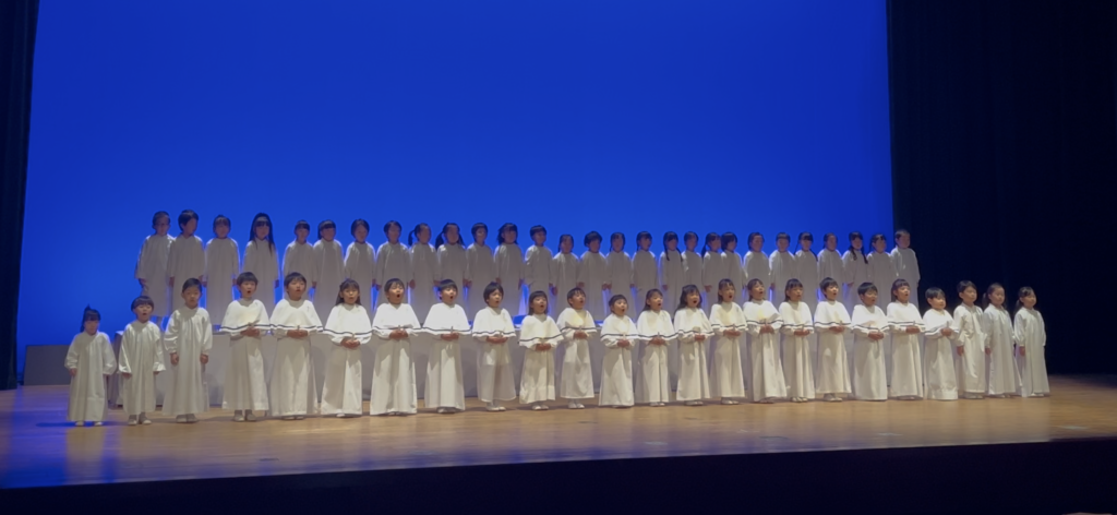 年長のひかり組さんは、様々なパートに分かれ、準備の段階から練習をかさね、みんなでイエス・キリストの誕生をさんびしました。