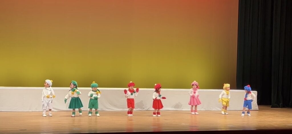 ひよこ組とつくし組は合同で「It’s a small world」の曲に合わせて、世界平和を着飾って踊りました🌏